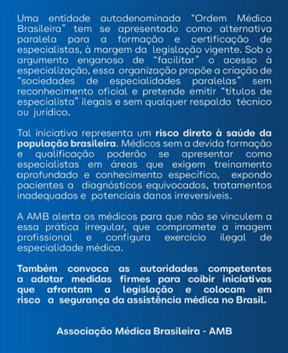 Entendemos como legítimo o papel da AMB na regulação e certificação. Outrossim, por sua vez, entendemos como irregular e ilegal quaisquer ações paralelas que possam ludibriar, enganar e macular os processos (sérios) de certificação.