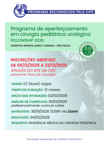 Os estágios são destinados aos cirurgiões que já tenham concluído seu treinamento em Cirurgia Pediátrica e que desejam se aperfeiçoar nessas técnicas de tratamento.